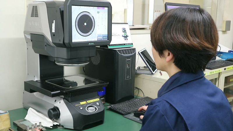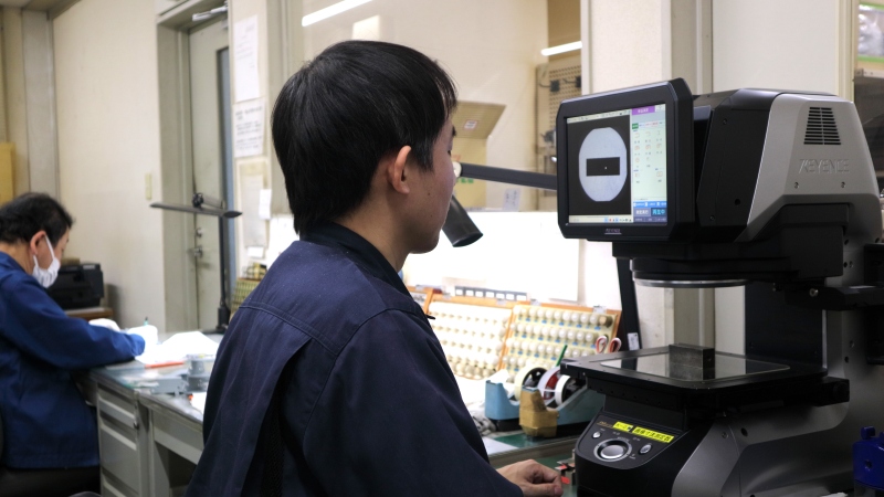 検査室は精密測定を行うため、常に一定の温度・湿度で保たれクリーンで快適な環境です。製造現場の男性が多いイメージがあるかもしれませんが、私のように女性であってもすごくフラットな雰囲気で、働きやすいです。図面の見方や測定器の使い方は入社後にイチから丁寧に教えてもらえたので、未経験でも安心してスタートできました。