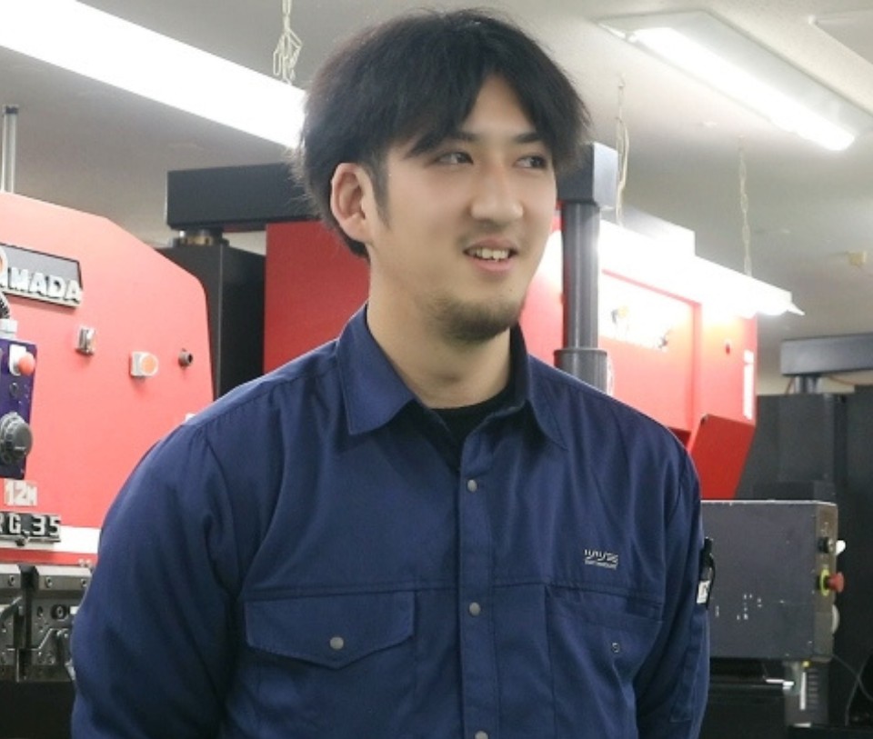 「エキスパート制」なので、一つの技術にとことん集中できることです。先輩方も「見て盗め」ではなく、プログラムの組み方からツールの選び方まで論理的に教えてくれます。ツツミの工場現場は明るく楽しく、のびのびと仕事に向き合えます。今は「工場板金技能士」の国家資格取得に向けて、会社からのサポートを受けながら勉強中です。